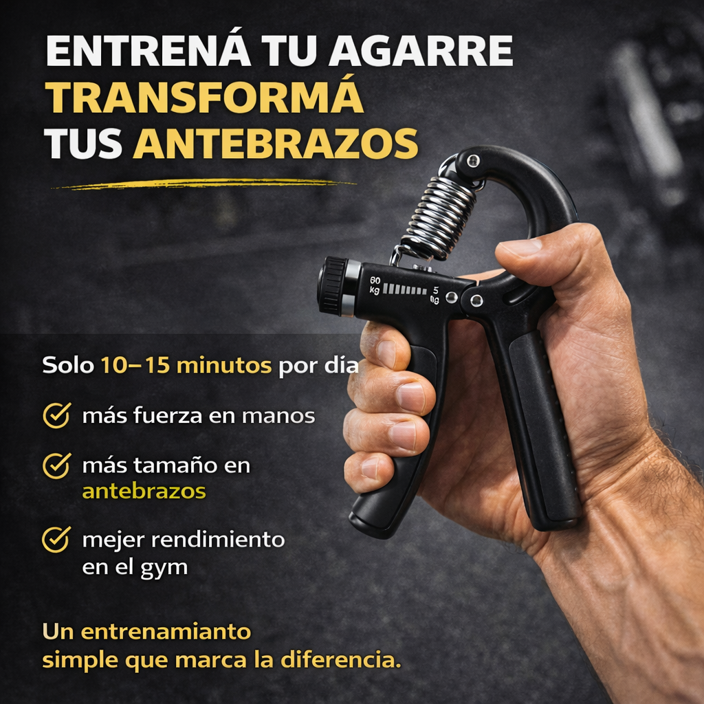 El Handgrip incluye resistencia ajustable de 5 a 60 kg, lo que permite adaptar el entrenamiento a cualquier nivel.